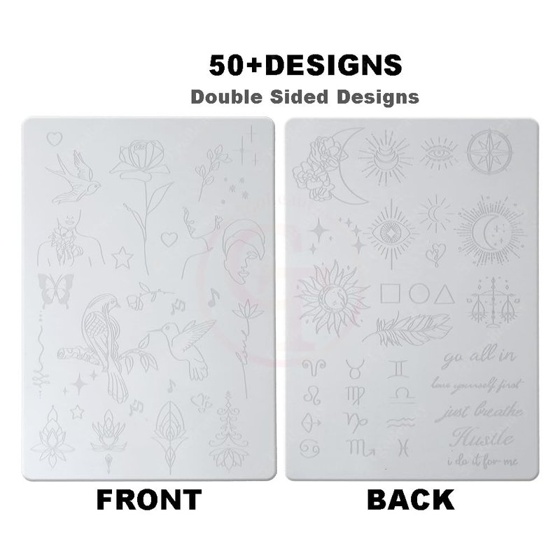 White Tiny Tattoo Practice Skin Double Sided Silicone Tattoo Training Pads Feature over 50 Different Stencil Designs for Tattoo Practice (5pcs)