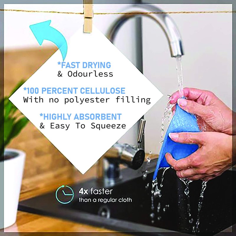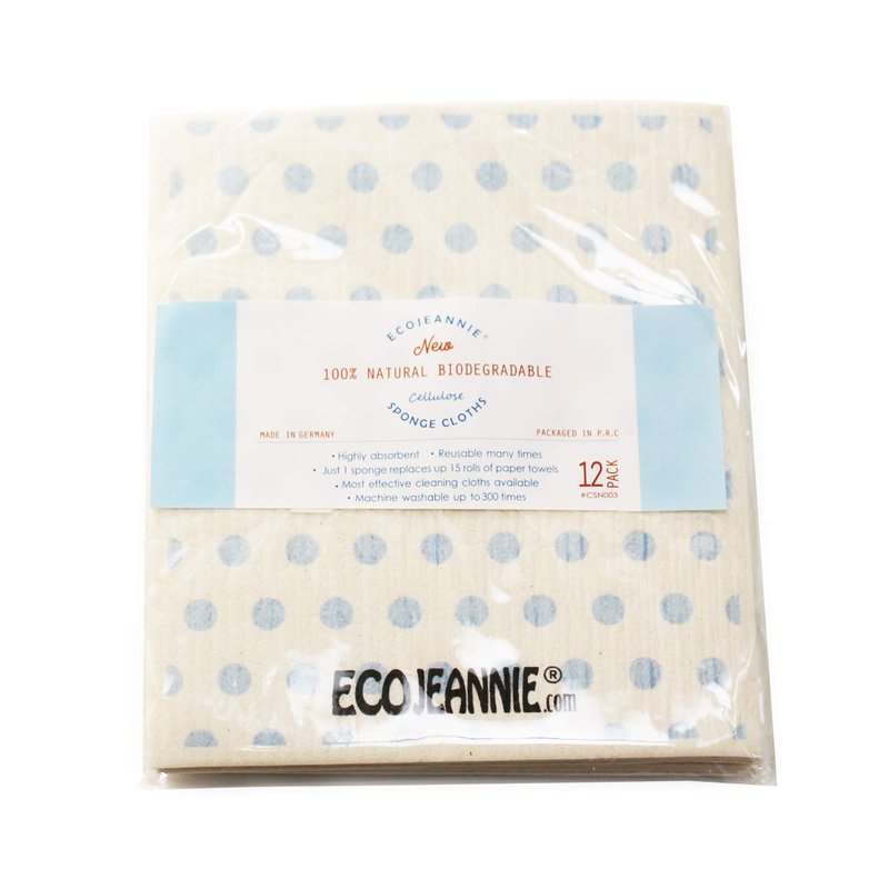 - Eco-Friendly Material: Crafted from 100% Natural Biodegradable Cellulose, EcoJeannie Sponge Cloths are the epitome of eco-friendliness. These non-GMO, unbleached cellulose cloths can absorb up to 20 times their weight in water.