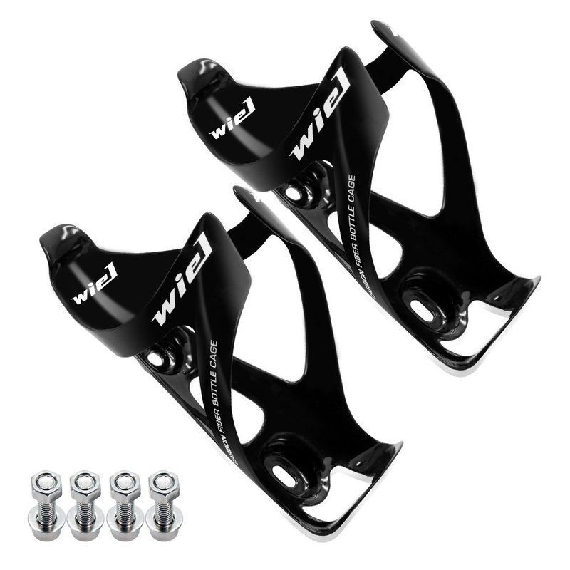 Wiel 100% Full Carbon Fiber Bicycle Bike Light Drink Water Bottle Cage Holder (2Pcs All Black)