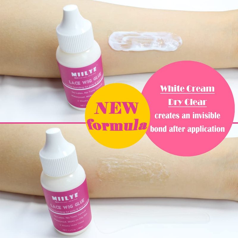 - MIILYE lace wig glue are designed for both women and men with sensitive skin and scalp, our formula contains no latex and no toxic ingredients, our lace front wig and toupee glues will NOT hurt the natural hair, you can be confident and comfortable with this hair bonding glue;