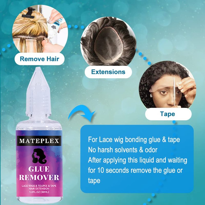- Multi Occasions:Specially Designed for Dissolving Wig Adhesives and Lace Wig, Men's Toupee and Hair Closure.Remove lace adhesive quickly and efficiently. Our glue Remover can remove adhesive residue from a variety of cosmetic bonding products. Can be used for all tape-in hair extensions including skin wefts and effective for any tape strength.(The color of product accessories is sent randomly and cannot be specified.)