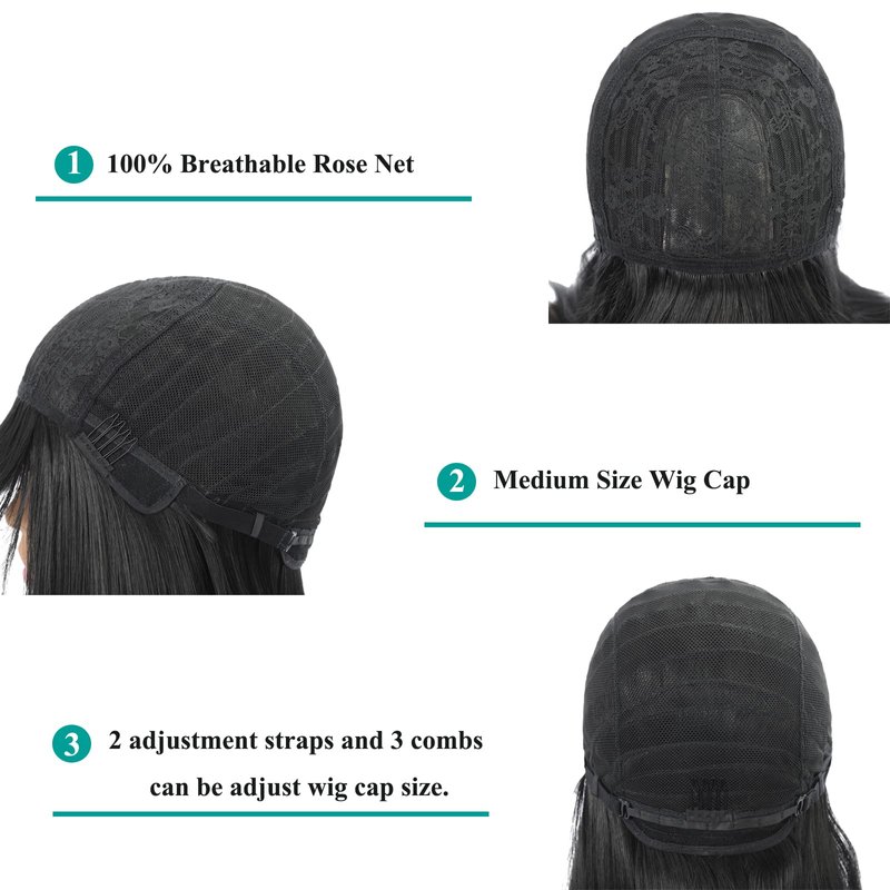 - Wig cap size is medium size, there are two adjustment straps at two side of the wig cap, suitable for more sizes