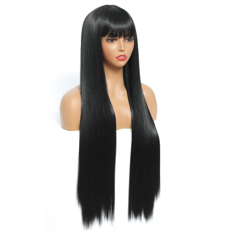 Wig with Bangs Long Black Wigs for Women 30 Inch Synthetic Straight Hair, Cosplay Costume Party Daily Wear