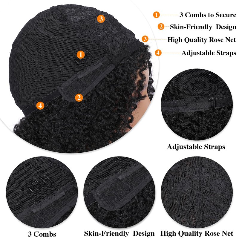 - Package Include: 1 short kinky curly wig +1 free cap. We support the 30-day return for no reason. If you order this and happen any quality problem please contact with us. Our friendly customer service team 24 hours are waiting for helping you.