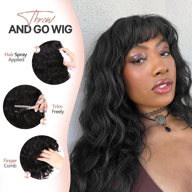 • 【Natural Look】The Short Black Wavy Human Hair Wig With Bangs Provides a Natural Look And Blends Well With Your Own Hair. It's Perfect For Women Who Want To Achieve a Stylish Look. No Glue No Gel, Easy To Wear And Take Off, You Can Trim And Restyle The Bangs As Liking.