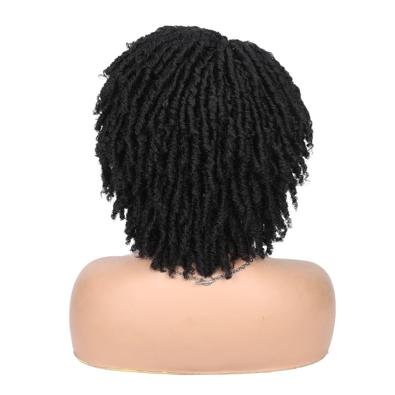 WIGER Dreadlock Wig Short Faux Locs Twist Wigs For Black Women Afro Braided Curly Synthetic Wigs For African American Women Daily Party Use(6 inch,1B)