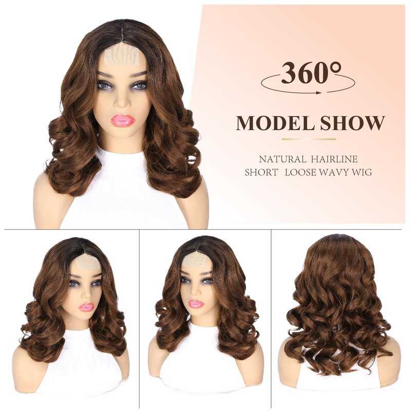 Loose Wave Wig Short Body Wave Wigs Short Bob Wigs Shoulder Length Wig Ombre Brown Synthetic Wig Middle Part Wigs For Women