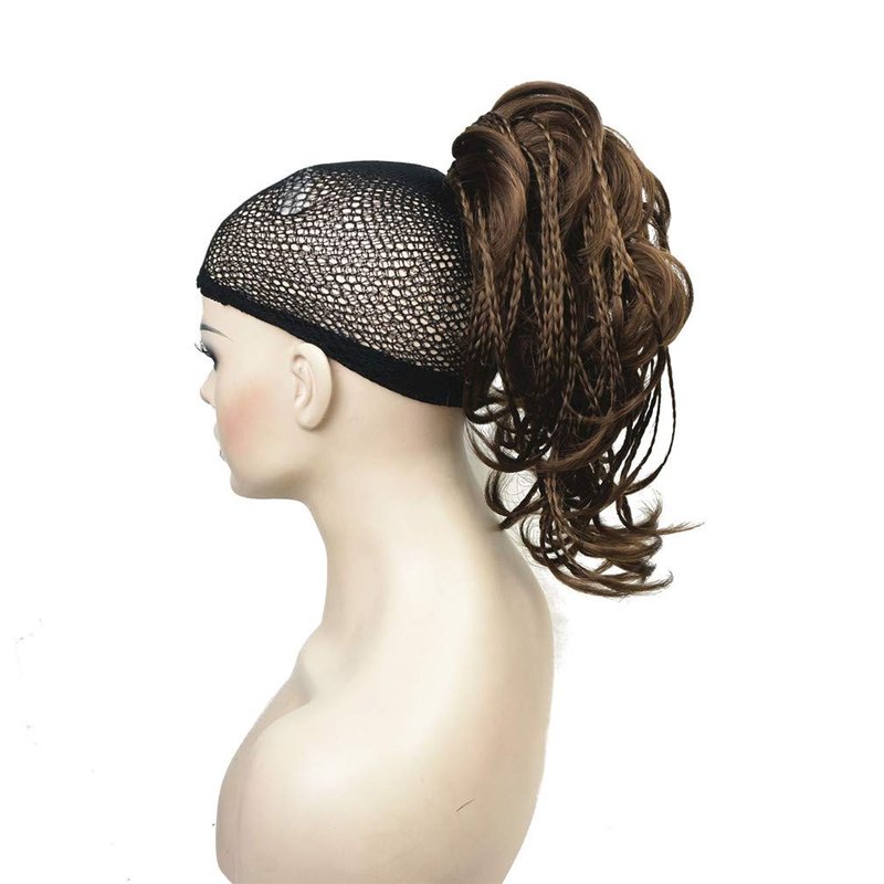 Wiginway Messy Style Ponytail Hair Extension Handmade Braid Synthetic Hair-Piece with Jaw Claw Clip (Medium golden brown)
