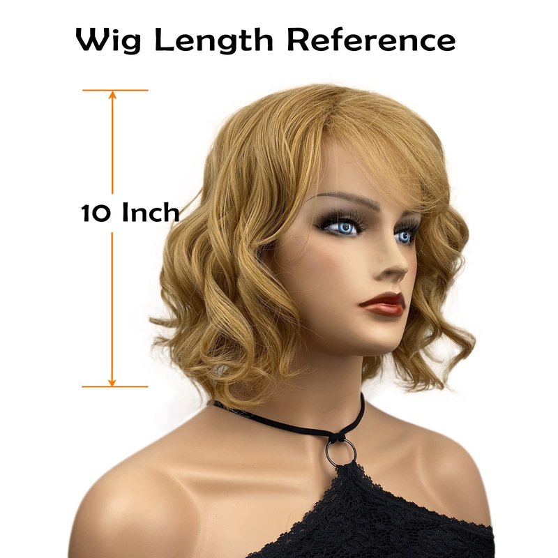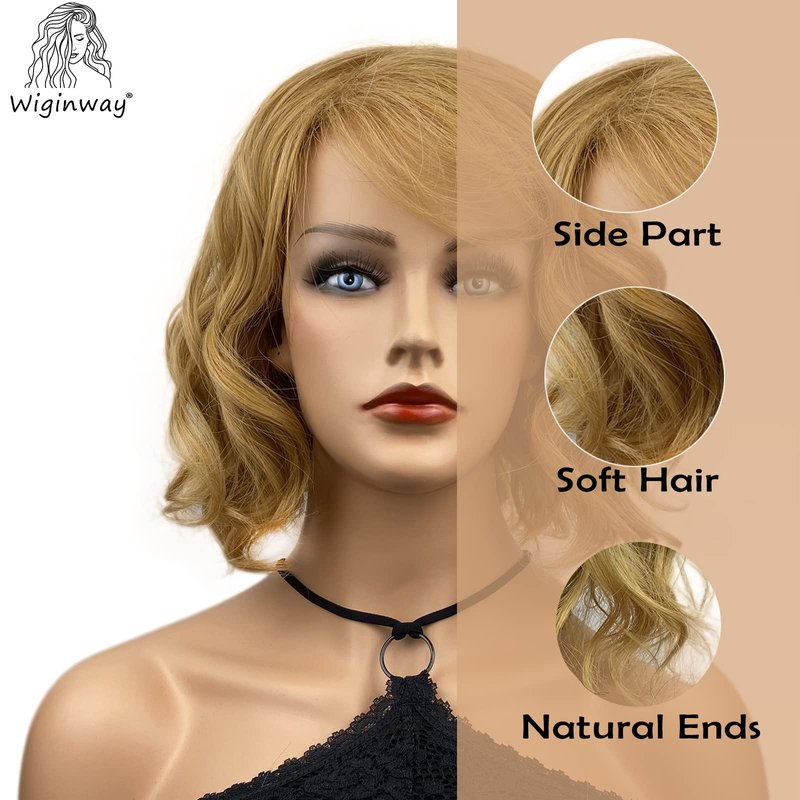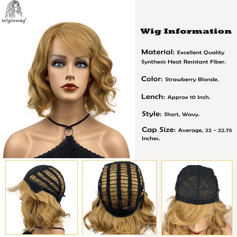 Wiginway Short Wavy Soft Heat Resistant Fiber Synthetic Wigs Natural Looking Premium Hair for Women 10 Inch Strawberry Blonde