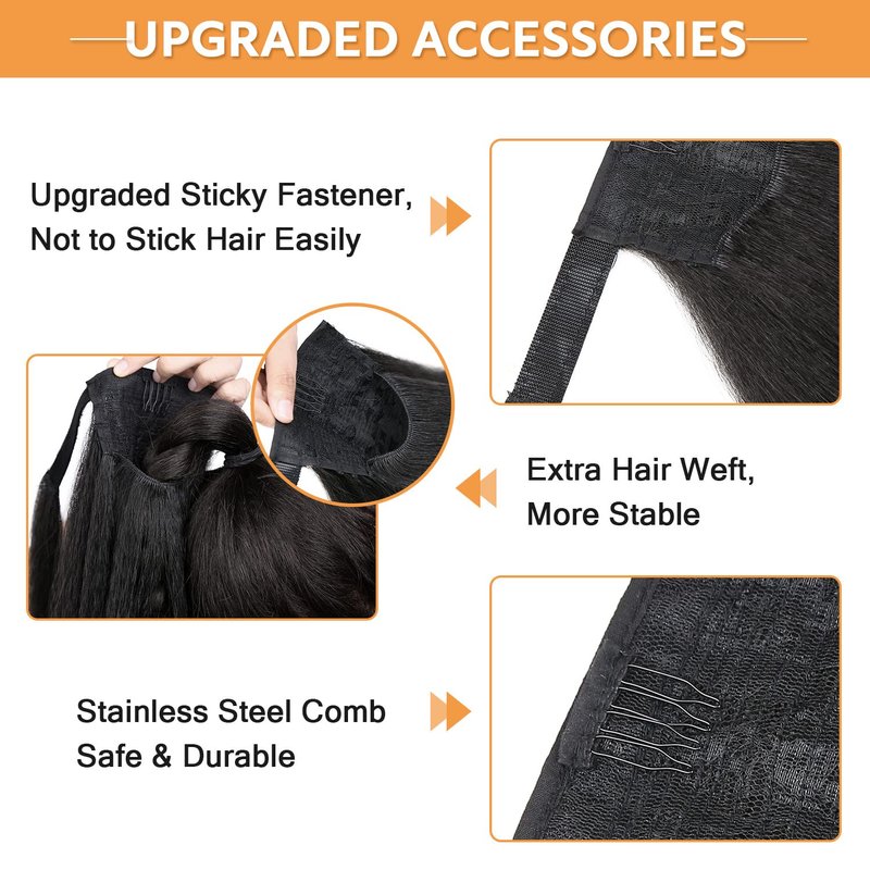 - Material&Texture: Great quality high temperature synthetic hair. Long yaki ponytail with fully hair.Super softer touching and natural looking.Tangleless and minimal shedding.
