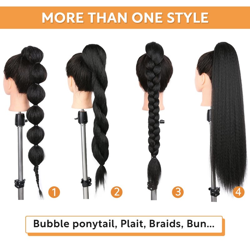 - Versatility: WIGNEE long yaki ponytail is able to do High Ponytail, Low Ponytail, Pigtail, Braided Ponytail, Fishtail Ponytail, Bubble Ponytail, Up-dos, hair bun.Restyle it as you wish.