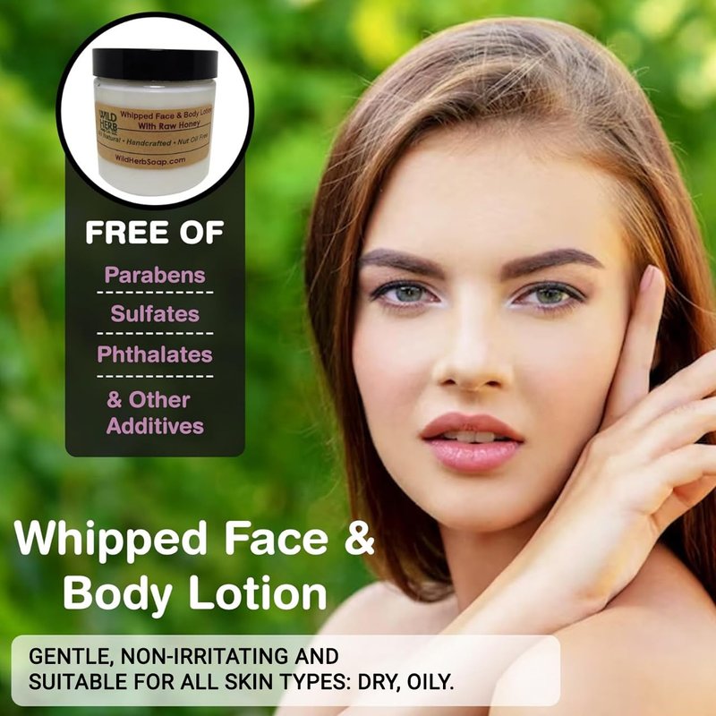 Wild Herb Whipped Face & Body Lotion Honey Lotion With Organic Arizona Raw Honey - Suitable for All Skin Types: Dry, Oily