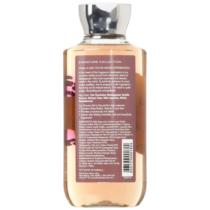 Bath and Body Works Wild Madagascar Vanilla 10 Oz. Body Wash. Made with Pro Vitamin B5 and Aloe. Fragrance notes: Wild Madagasscar Accord, African Pear, and Wild Jasmine.( Bottle Artwork/Color May Vary as Seasonally Refreshed by Manufacturer).