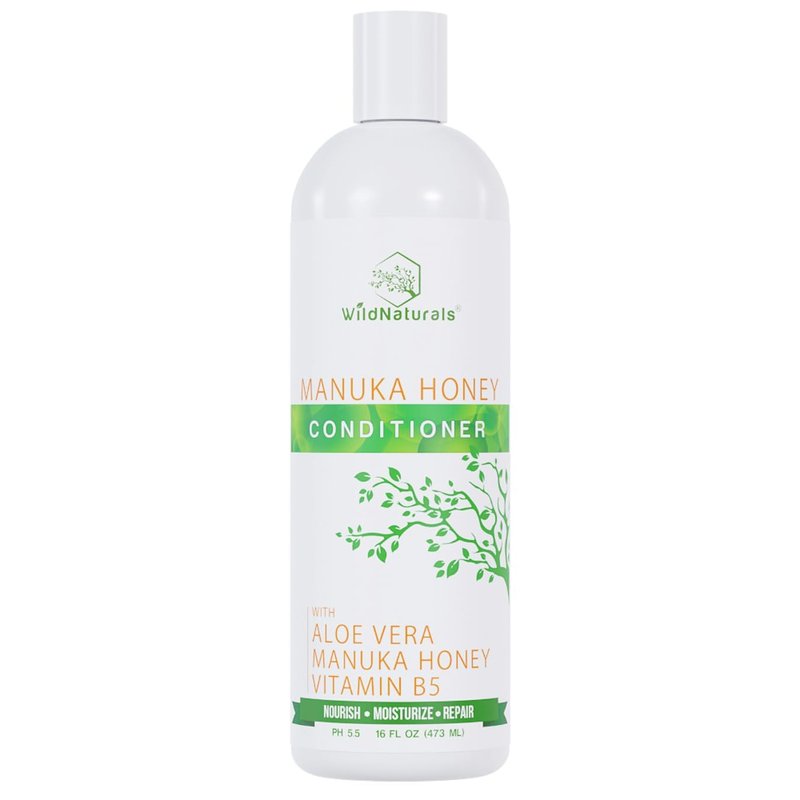 Wild Naturals Sulfate Free Conditioner : With Manuka Honey + Aloe Vera, For Hair Loss, Thinning Hair, and Itchy Dry Scalp. Anti Dandruff, Moisturizing, 98% Natural, 80% Organic Healing Plant-Based