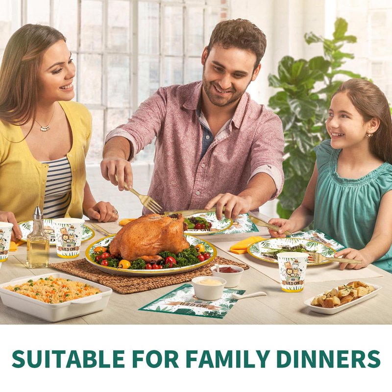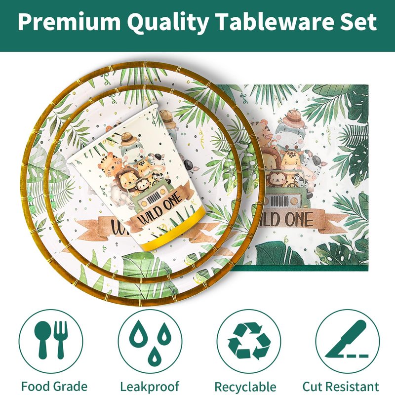 - 【Premium Material】 Our Jungle Theme Wild One Decor Tableware is made of are made of safe and reliable food grade materials, 350g thick "Soak Proof Shield" board - STRONG, STURDY, NON-LEAKY, superior to 300g of paper on the market, provide you with a party full of a happy birthday atmosphere.