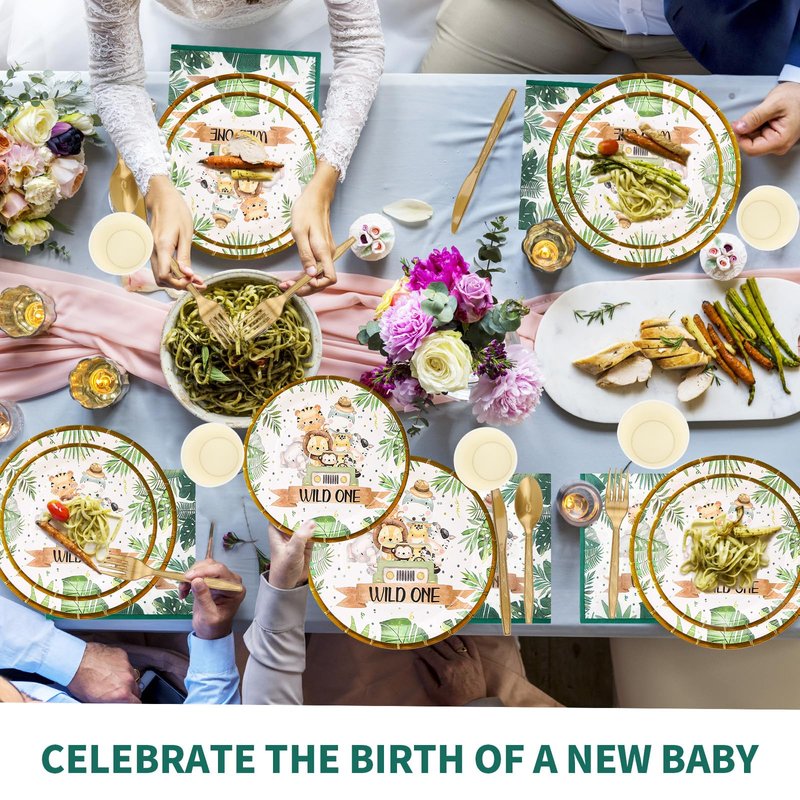 - 【Wild One Birthday Decorations Supplies】Our Wild One Animal Party Plate Set for you adopts the safari Tiger, Elephant, and Lion design. Decorating your party with animal safari baby shower decorations will be a great choice.
