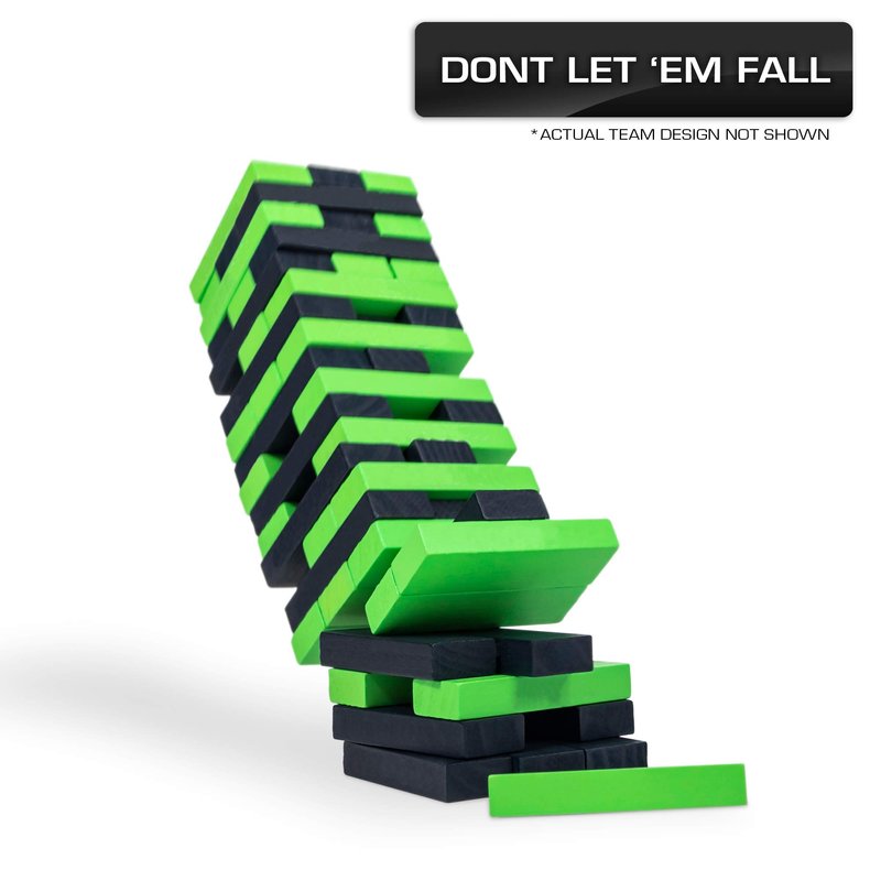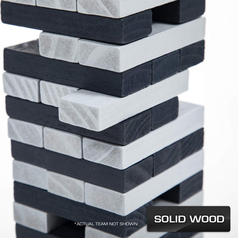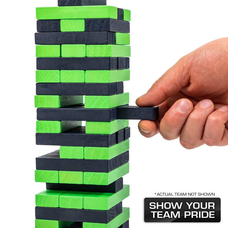 - A CLASSIC JENGA GAME, IN YOUR FAVORITE NFL TEAMS - A wooden block game that challenges players to push and pull stacking blocks from the tower and strategically place them back on top. Last player standing without knocking the tower down, WINS.