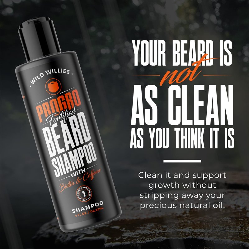 - Your Beard is Not as Clean as You Think: Beards trap dirt and grease, so they need extra attention to remain clean. But just using any old regular shampoo or face wash isn’t the answer – it can strip the little natural oil your beard has. Wild Willies PROGRO Beard Wash cleans your beard without stripping away precious sebum oil while supporting beard growth. 4-oz bottle.