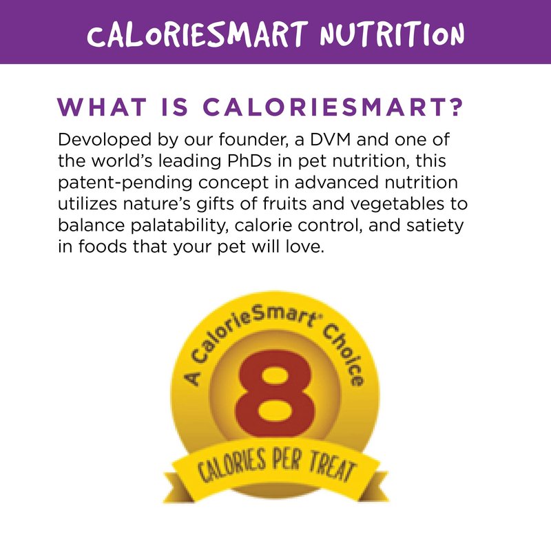 - Made with just 14 ingredients that leaves out the stuff he doesn’t need to eat. Only 1.9 calories per treat and helps to reduce hunger in between meals