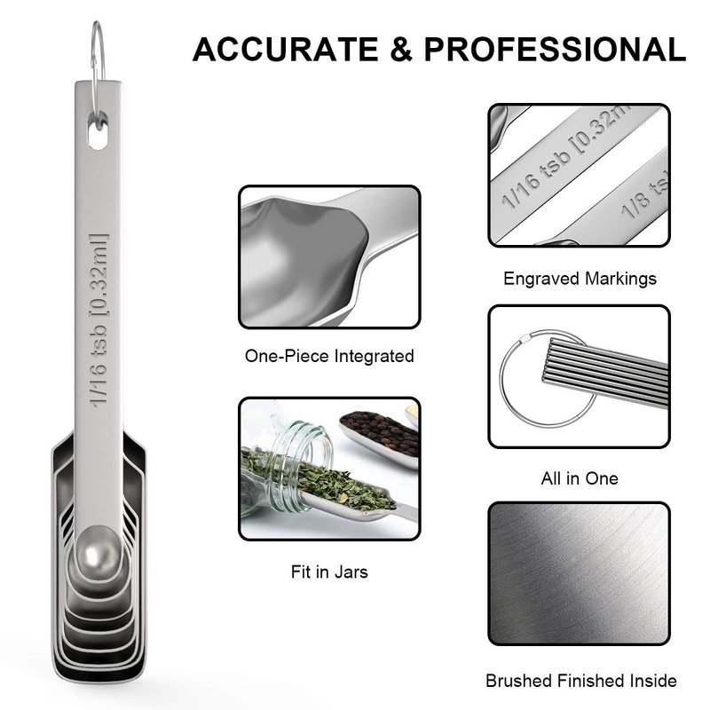 - ⭐ [CONVENIENT TO USE] The rectangular design of the measuring spoons is slim and narrow to fit into small spice jars or herb containers, ideal for measuring any amounts. You don't need to shake spices onto the spoon so you will save more and waste less of your spices and also make your kitchen clean and no more clutter.