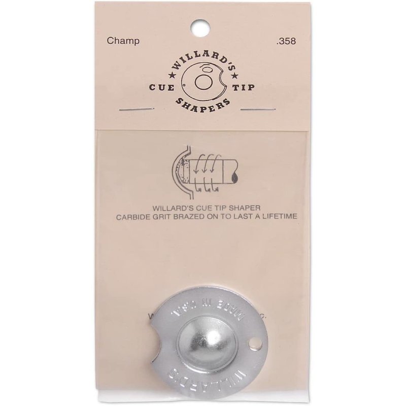 - Purpose - The Willard Cue Tip Shaper is designed to quickly and accurately reshape your cue tip to the perfect dime radius of 0.358 in. every time.