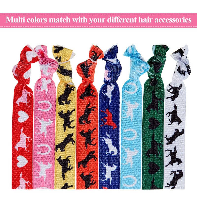 WILLBOND 32 Pieces Ribbon Hair Ties Derby Hair Accessories Sports Elastic Ribbon Tie Gifts for Christmas Mexican Festival Derby Horse Racing Decor Women(Horse Pattern)