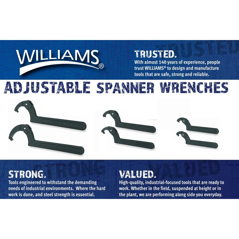 Williams JHW472 Adjustable Hook Spanner Wrench with Span Diameter of 1-1/4 to 3-Inch, Ideal for Adjusting Collars, Lock Nut Rings, and Bearings