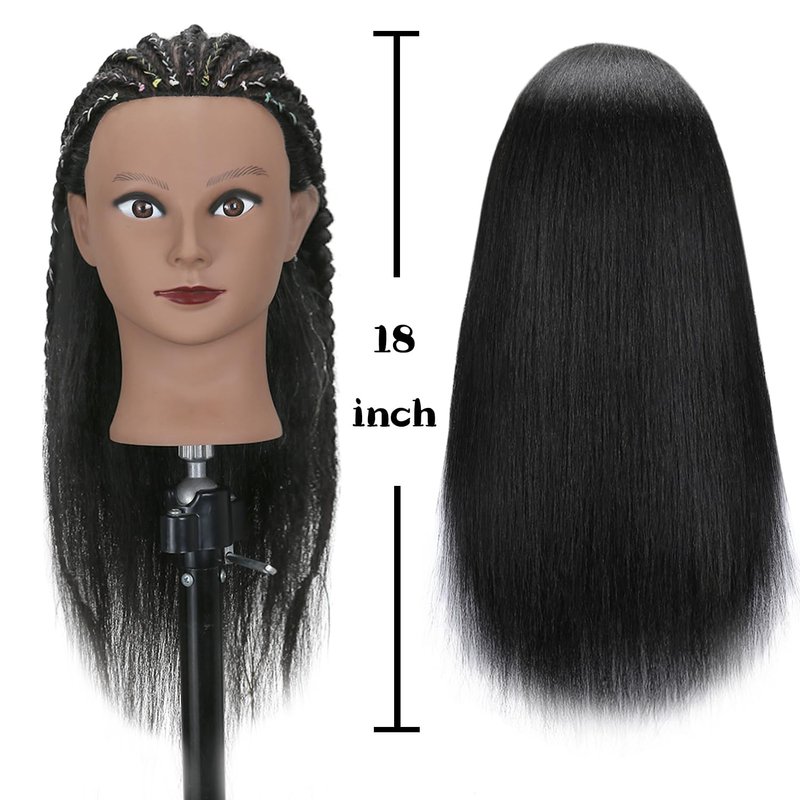 Willinghair Mannequin Head with 100% Real Hair, 18" Hairdresser Cosmetology Manikin Training Practice Doll Head with Free Clamp and 9 Tools for Hairstyling - Black