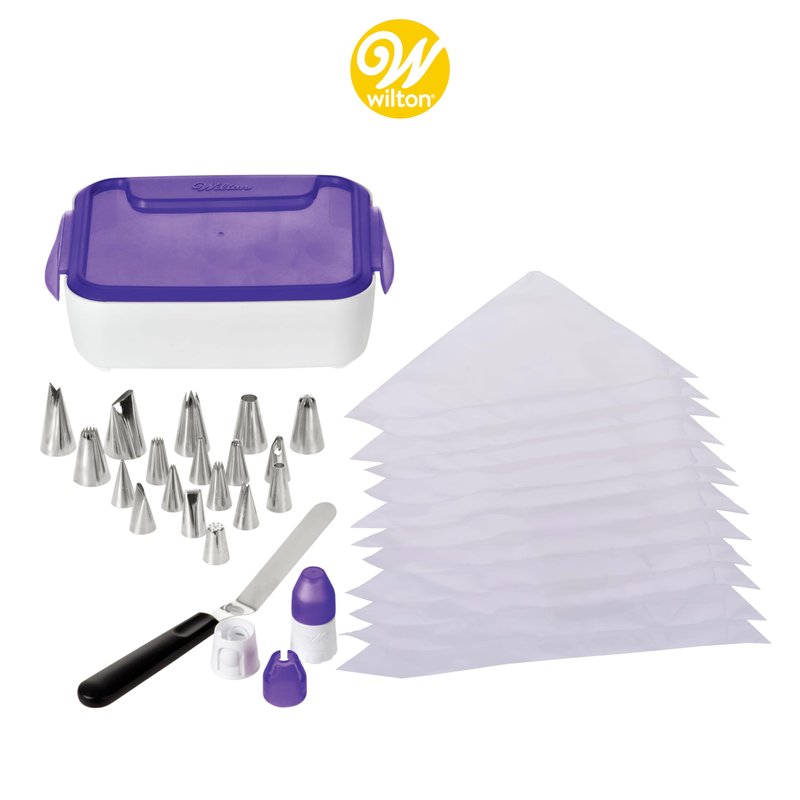 Wilton Cake Decorating Supplies Kit - Decorate Treats with Your Organized Decorating Tool Set, Disposable Pastry Bags, Stainless Steel Icing Tips and Spatula, 46-Piece