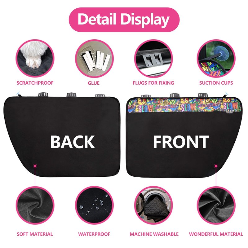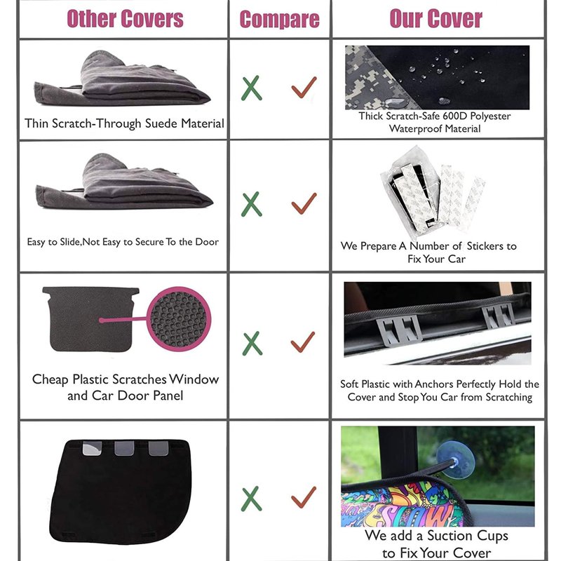 - PREMIUM QUALITY & SCRATCHROOF: The dog car door cover is made of high quality nylon and PVC free material, which can avoid the door from scratches and bite. It’s soft for your pet. Enjoy the roadside scenery freely with your dogs.