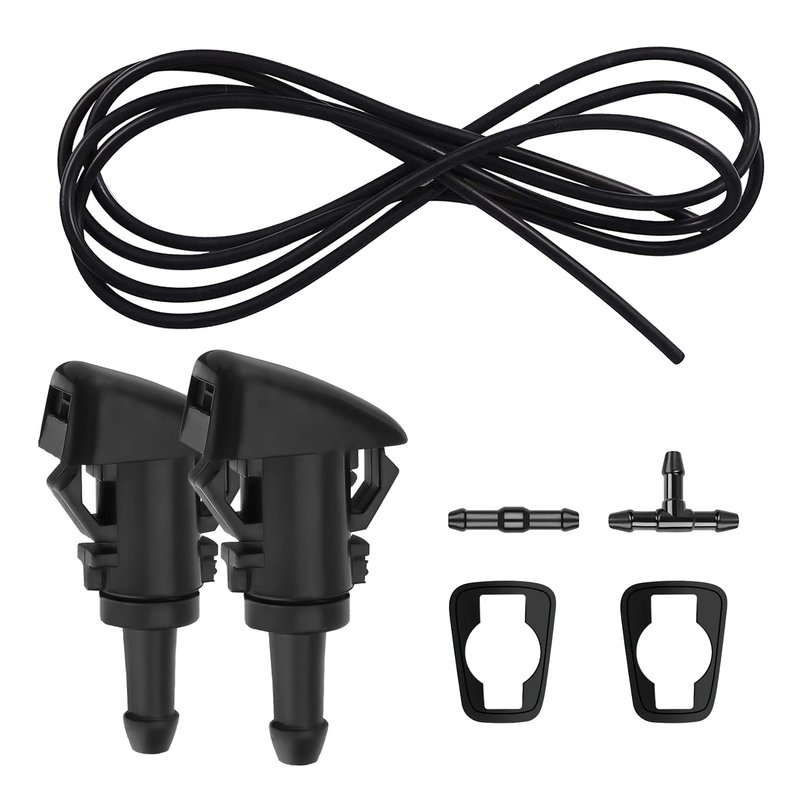 Windshield Washer Nozzles Kit, Washer Jet and 2 Meter Fluid Hose with Connector, Windshield Washer Hose Kit Compatible with Chrysler, Dodge, Jeep, Replaces OEM #: 4805742AB, 5113049AA