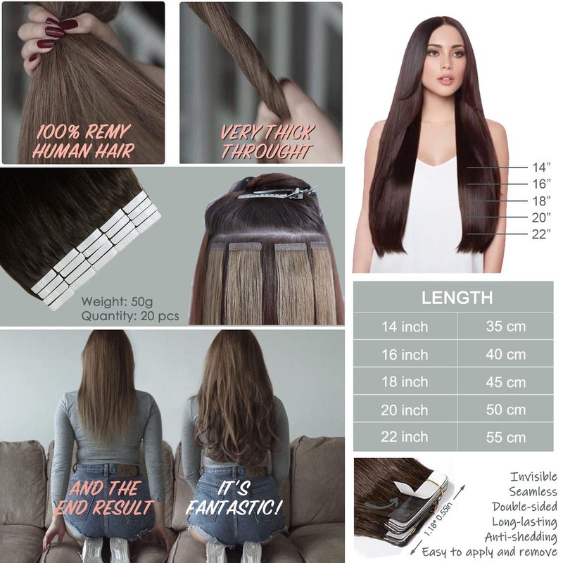 - Specification: WindTouch tape in hair extensions human hair are 14-22 inch, 20 pieces each pack. All lengths are 50g. If you have thick hair, we recommend purchasing 2-3 packs to achieve a perfect result.