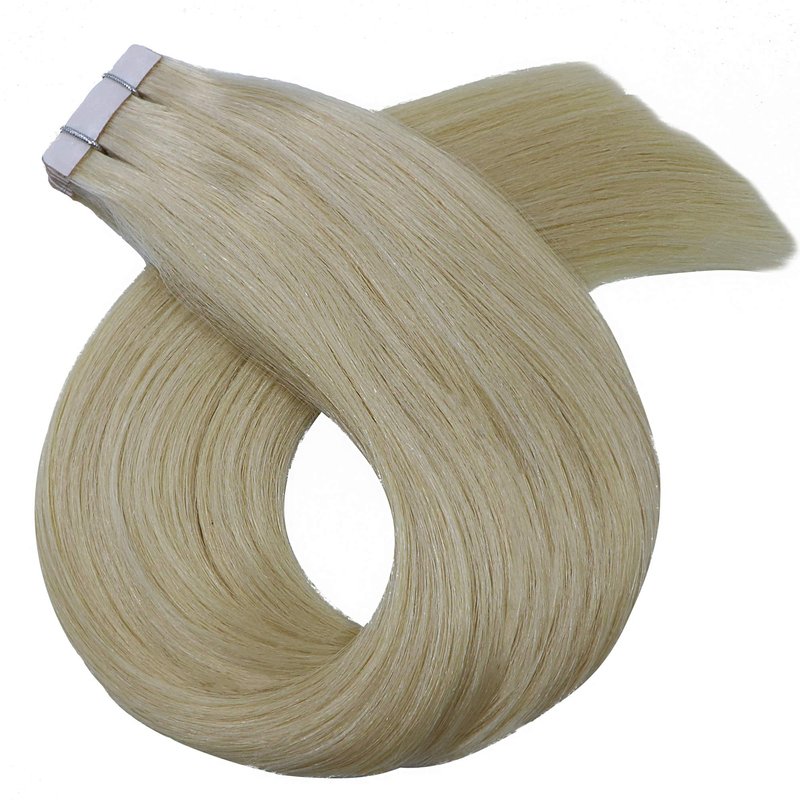WindTouch Tape in Hair Extensions Double Sided Tape In Extensions Platinum Blonde Solid Color Basic Color Fine Hair Natrual Real Human Hair 50g Hair Extensions Seamless Straight Full End 16Inch 20PCS