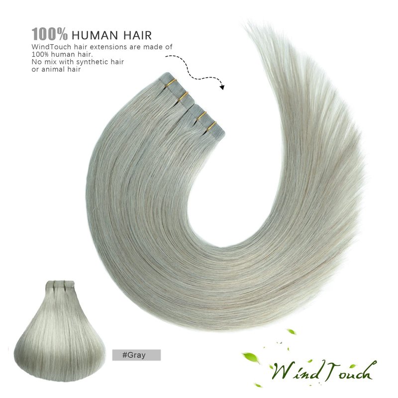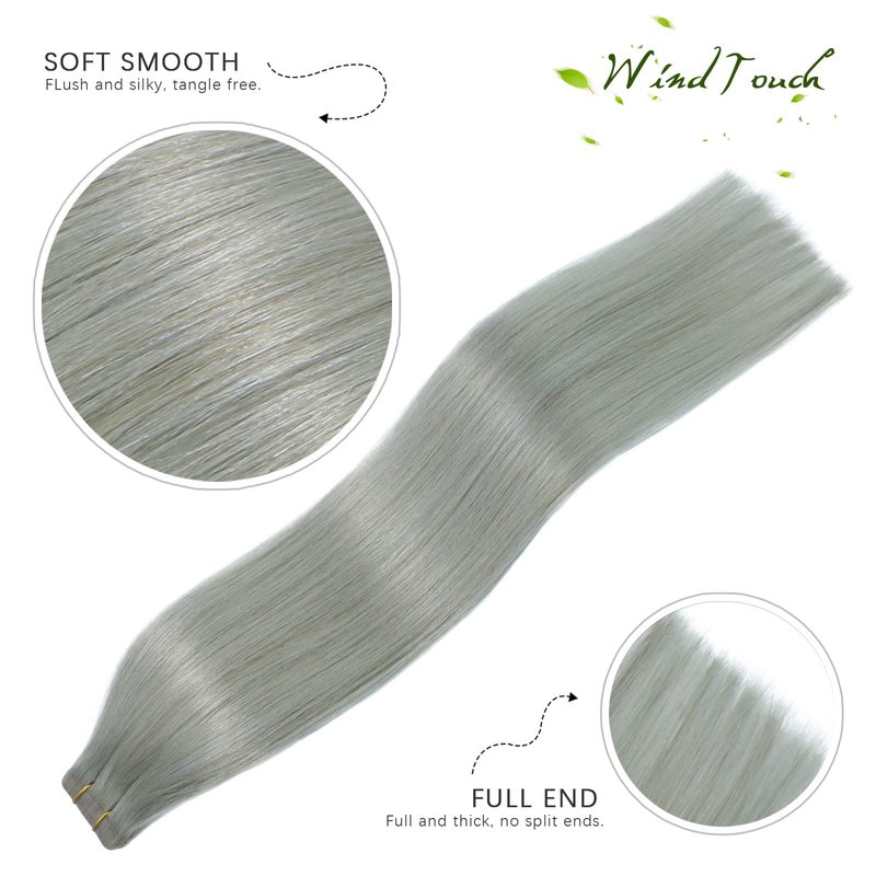 WindTouch Tape in Hair Extensions Silver Gray 100% Human Hair Extensions Straight 20 Pcs 20Inch #gray 50g