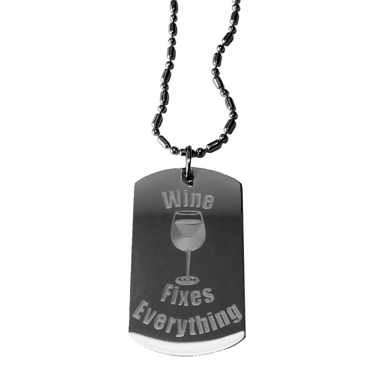 Wine Fixes Everything - Luggage Metal Chain Necklace Military Dog Tag