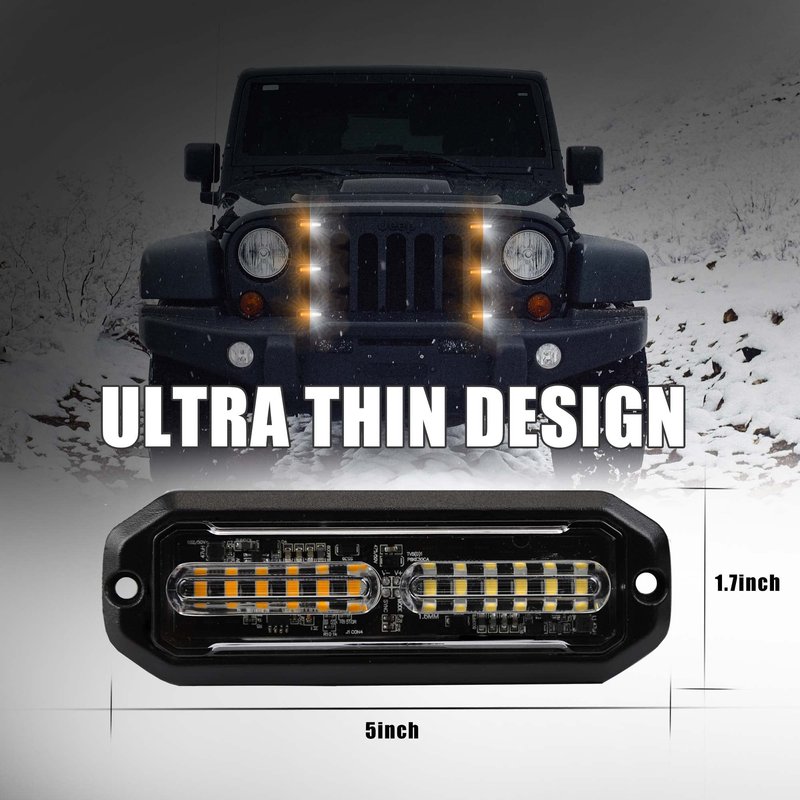 - EASY TO INSTALL: automotive emergency strobe lights with Ultra-thin design is very easy to install. Supplied with gaskets and screws to mount it to the grille or bumper .The Package coming with installation manuals )