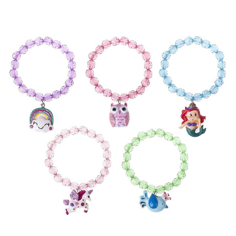 Wingchold 5pc Mermaid Bracelet, Unicorn Bracelet, Little Girl Animal Bracelets, Teens Kids Owl Pendant Beaded Bracelet Girl Party Favor Pretend Play Bracelet (Animal Bracelet)