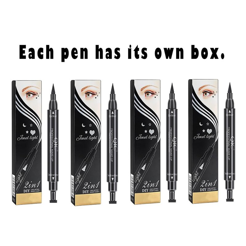 - 💟 【Two-in-One Design】 Waterproof, matte black liner featuring a liquid felt-tip brush on one end and a pre-shaped winged stamp on the other end.