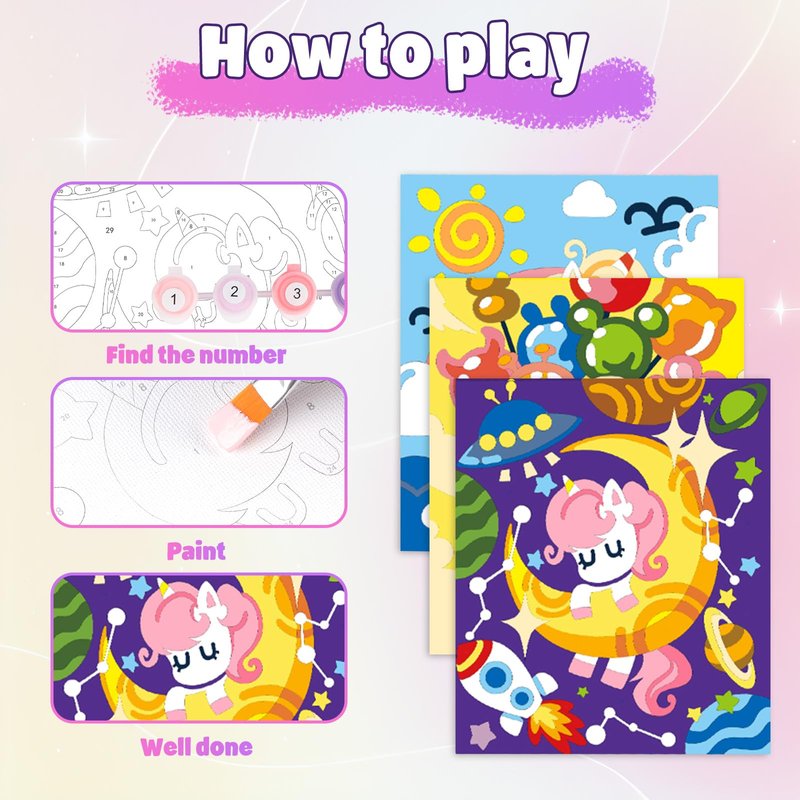 - 🦄【UNIQUE UNICORN CANVA BY NUMBERS】 Our paint-by-numbers kit is designed with unicorns, encourages creativity and learning.It helps develop fine motor skills and hand-eye coordination while teaching color recognition and artistic expression. Our canvas paintings are not only suitable for children; adults can also enjoy them just as much.