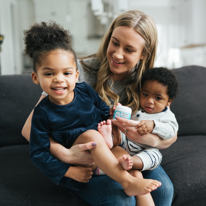 This bum balm not only calms those red, angry patches of diaper rash, it'll also soothe dry, irritated skin* on other parts of the body, as well as minor insect bites. So it's really handy to keep a little pot of it in your baby care kit at home or in the diaper bag when you're out and about with babe.
