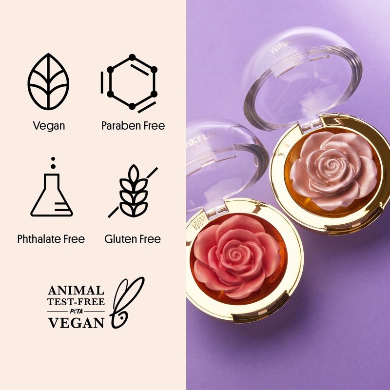 - Pop the champagne—and cheek bones—with Winky Lux Cheeky Rose Highlighter. This cream highlighter is infused with carnauba and vitamin E, for effortlessly smooth and blendable results. Uniquely set in the shape of a rose, the champagne-like shade leaves skin with a pearlescent dewy radiance.