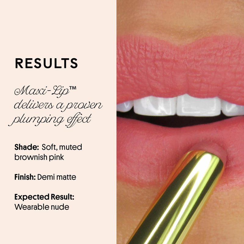 - Plump up the volume with Skinny Plump demi-matte lipstick. What’s the skinny? These weightless, wearable nude shades pack a lot of plump into a slim package. Infused with Maxi-Lip to give your pout a pumped-up look without the tingle, it also features nourishing plum oil and hydrating hyaluronic acid for a fuller appearance. Delivers precise application and a blur of soft-focus color for your best nudes yet.
