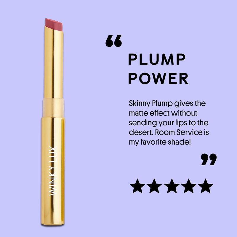 Winky Lux Skinny Plump Demi-Matte Lipstick, Natural Plump Lipstick, Weightless Long Lasting Soft Matte Lip Crayon, Infused with Hyaluronic Acid & Plum Oil, Room Service