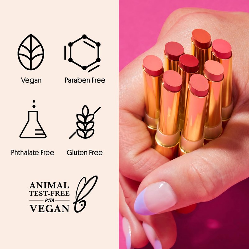 - Infused with Plum Oil which is rich in vitamins A, C and E and essential fatty acids to soften, hydrate, and nourish lips. Along with Hyaluronic Acid that draws in moisture to help give lips a plumper, smoother appearance. As well as Maxi-Lip ingredients shuch as Ethylhexyl Palmitate, Tribehenin, Palmitoyl Tripeptide-1, and Sorbitan Isostearate that have shown to help lips appear firmer, smoother, and more defined for a plumping effect without irritation.