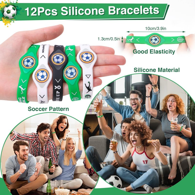- 48Pcs Soccer Party Favors Supplies - You will get 12 soccer drawstring bags, 12 soccer silicone wristbands, 12 soccer decorations, 12 soccer temporary tattoo stickers. From personalized soccer goodie bags to stickers, these favors will not only add to the decor, but also provide your guests with a keepsake. The people who love to play soccer, will love these fun and unique soccer gifts. Make your soccer party unforgettable with these amazing soccer party favors