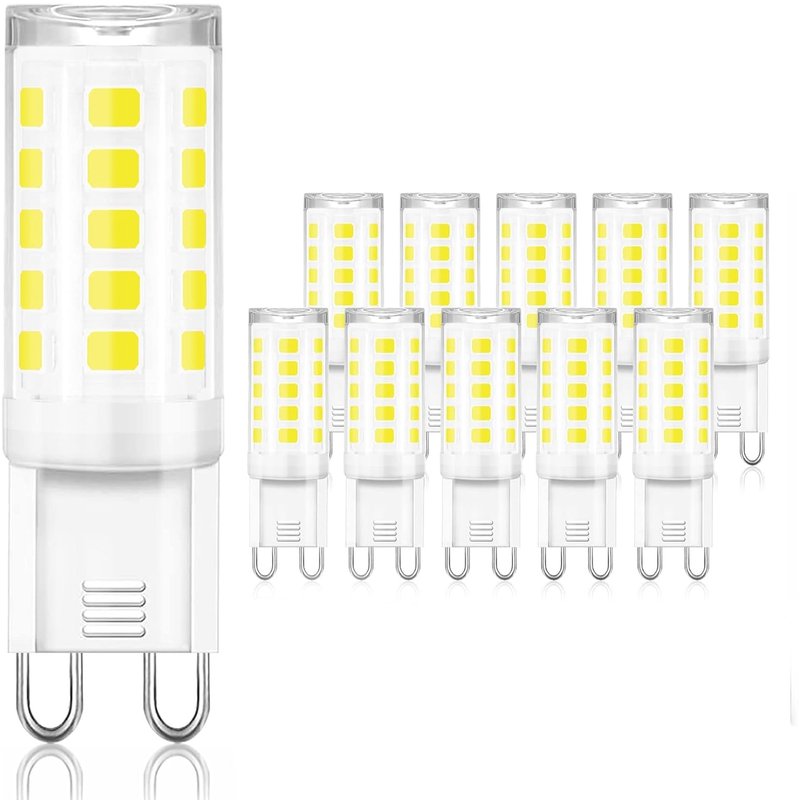 winshine 10 Pack G9 LED Bulb Bi Pin Base, 6000K Daylight 4W (40W Halogen Equivalent) T4 G9 Base Llight Bulbs for Chandeliers, 360° Beam Angle, 400LM, Non-dimmable for Home Lighting