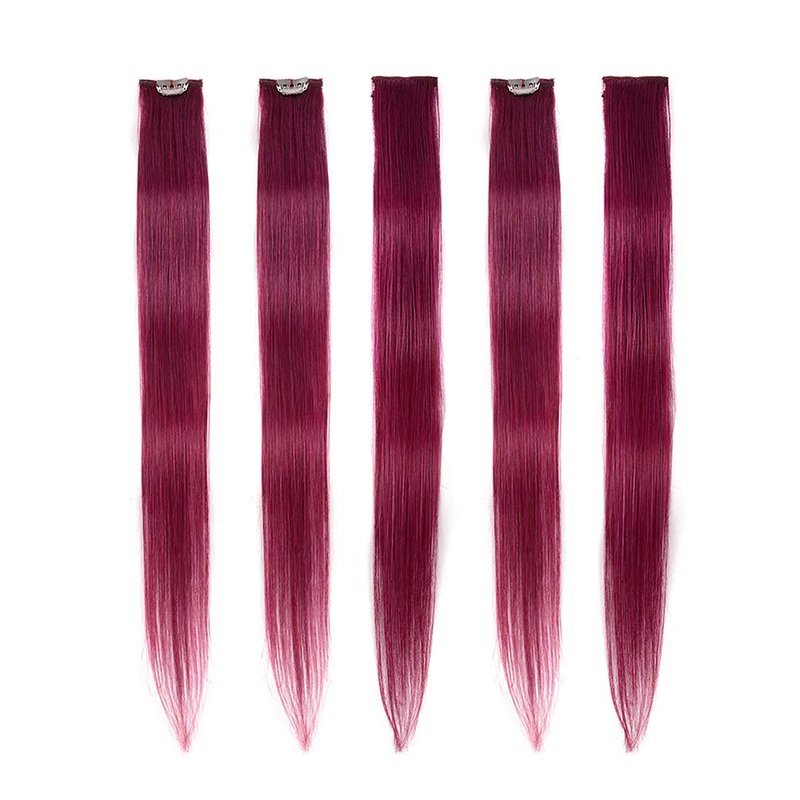 Winsky Burgundy Clip in Colored Hair Extensions 100% Real Human Hair - Straight Highlights Colored Clip on Christmas Hairpieces 5 Pieces/Set (18inch, Burgundy)