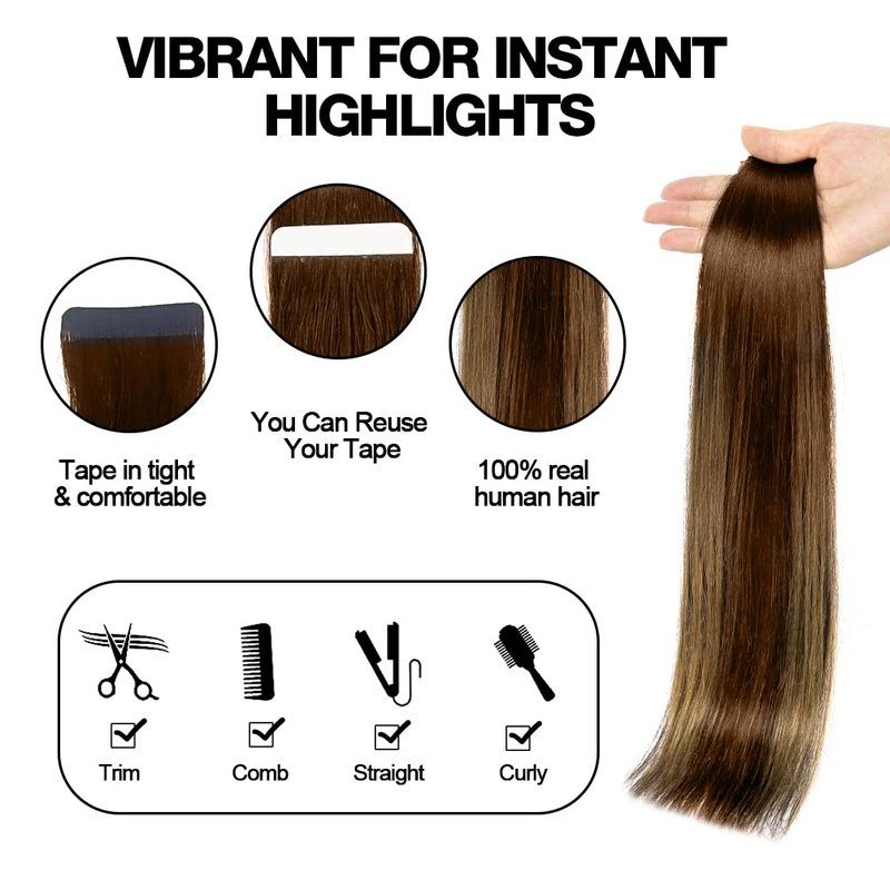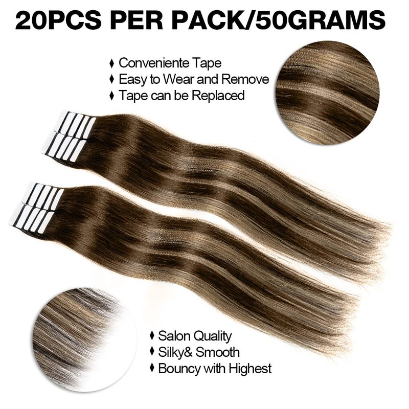 - ➱Reusable hair extensions with hypoallergenic invisible adhesive tape, easy to install and stay long with your hair. The extension can be reused by exchanging the tape bands.