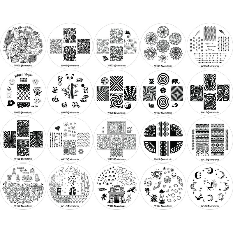 Nail art stamping plates are popular among amateur and expert due to its uniqueness and easiness to achieve impressive nail art. Using a Winstonia stamper to work with these stamping plates. Better yet, you can update as often as you like using nail polish color of your choice!