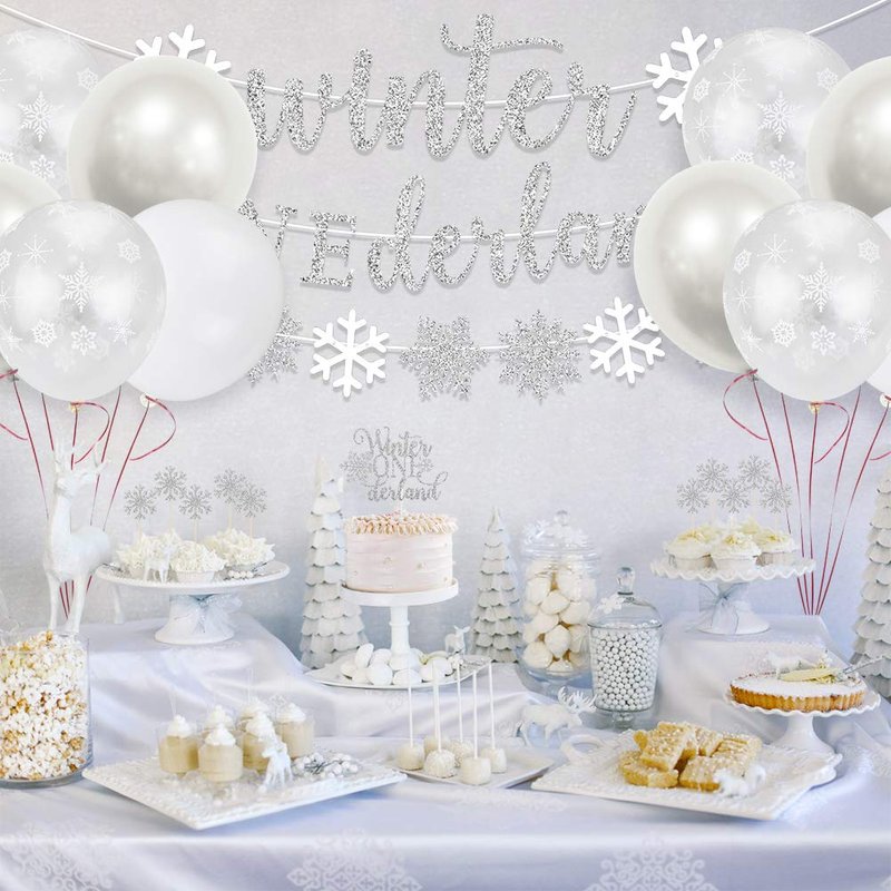 - Premium Quality Material - Our Winter Wonderland party decoration are reusable, the banner and the whole cake toppers made from quality glitter paper card, balloons are made of high quality thicker latex, worries free, very durable and safe for decorations, the colors of silver and white will create a cool atmosphere for your winter party and also bring lots of joy to every guest.